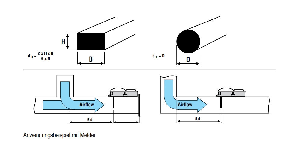 Geeignet zur Überwachung von Lüftungskanälen mit einem Mindestdurchmesser von 100 mm.